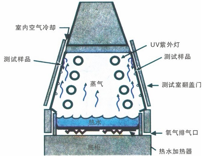8、光照、冷凝、噴淋試驗周期可調                   工 作 原 理 圖