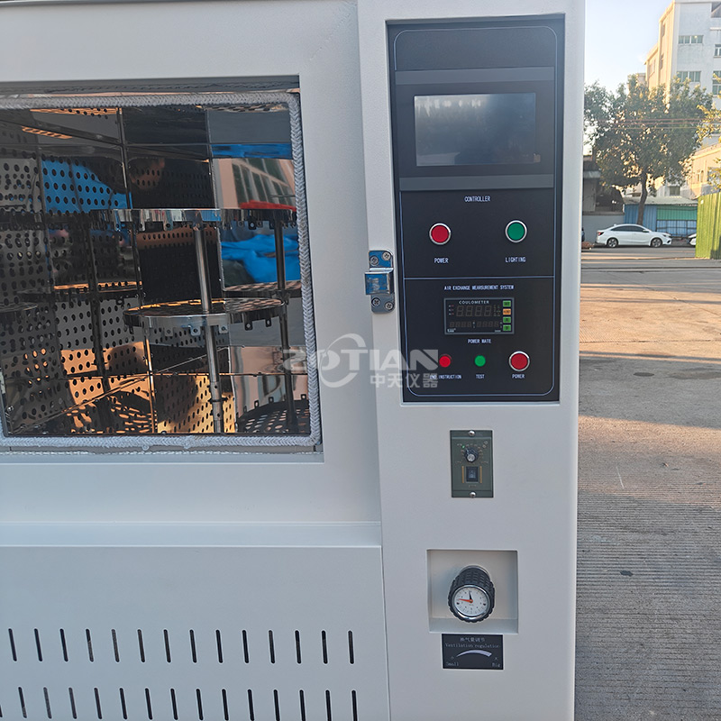 本機適用于電線類、皮類、塑料類、橡膠類、布類、經規定之溫度及時間均勻受熱后并保持箱內新鮮空氣,觀測試樣老化前后之耐黃、開膠、收縮、伸長、殘余率等性能,從而判定其老化特性。針對電線電纜類在受熱時為維持箱內新鮮的空氣,故特制換氣量的調節。